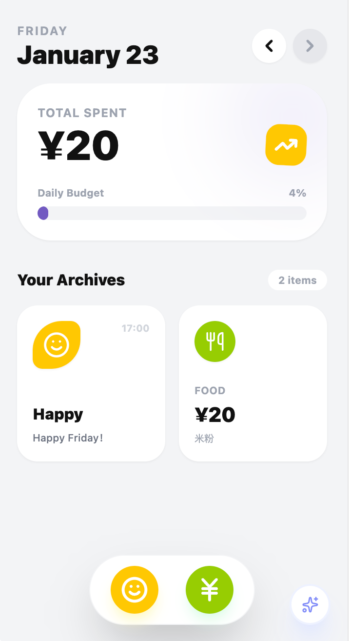 Share your daily mood and expenses.
